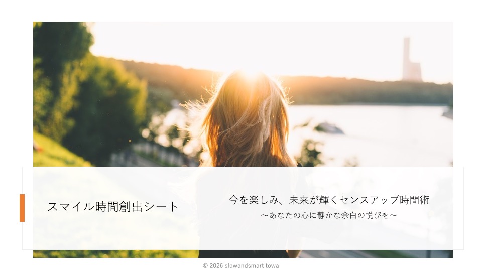 ライフタイムシフトブックをお申し込みの方には、「静かな余白とゆとりの時間が自然と生まれた」と大好評の「スマイル時間創出術シート」もプレゼント。
